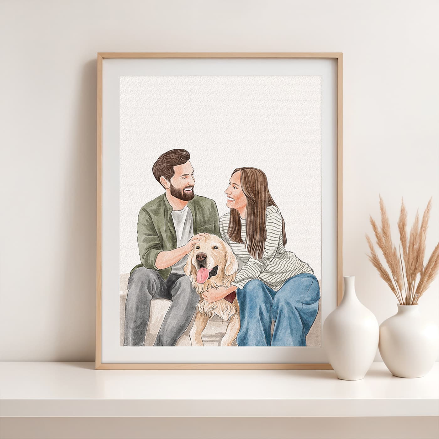 Our portraits are entirely hand-painted with watercolor, capturing the essence of each subject with meticulous detail and artistic flair.