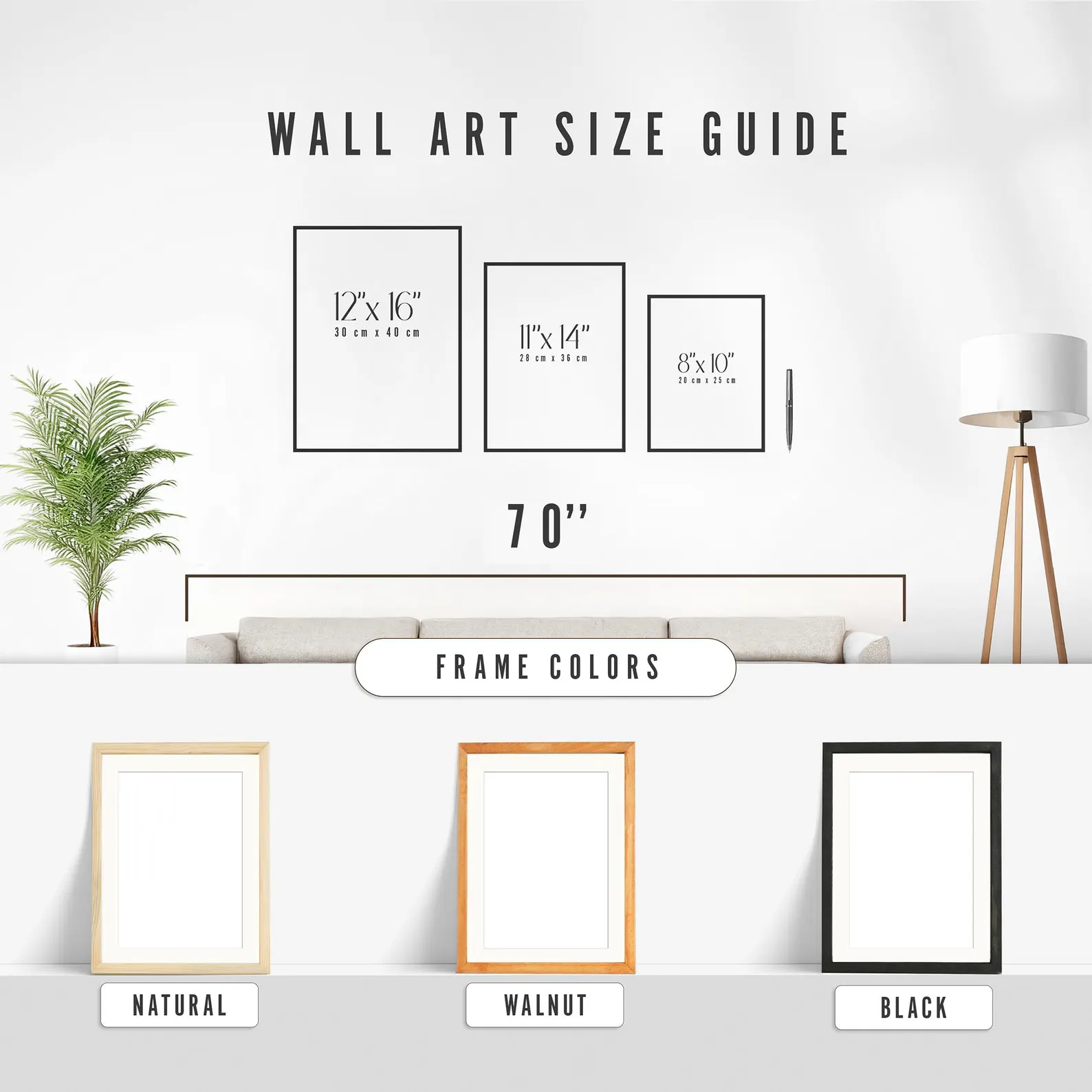 Our most popular size is 11×14 inches. It’s the perfect size for various spaces, whether it’s for a home or office.
