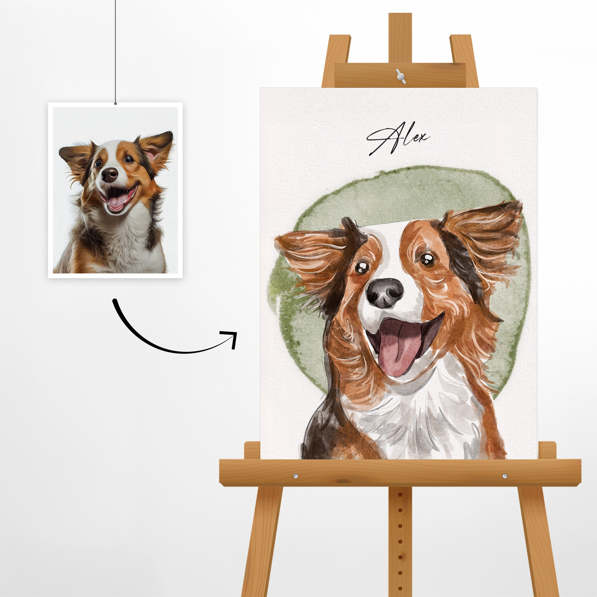 Our portraits are entirely hand-painted with watercolor, capturing the essence of each subject with meticulous detail and artistic flair.